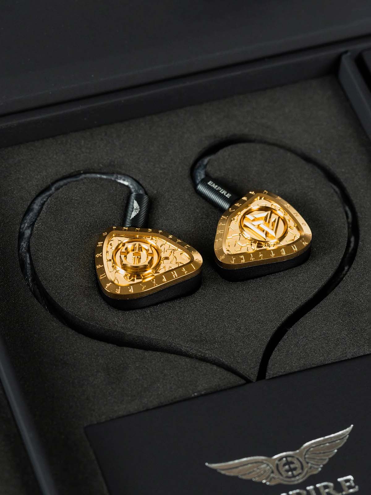 Empire Ears Odin MKII comes with the KVASIR quadbrid cable, handcrafted from gold, silver, and copper strands for flawless signal transmission and luxurious style.