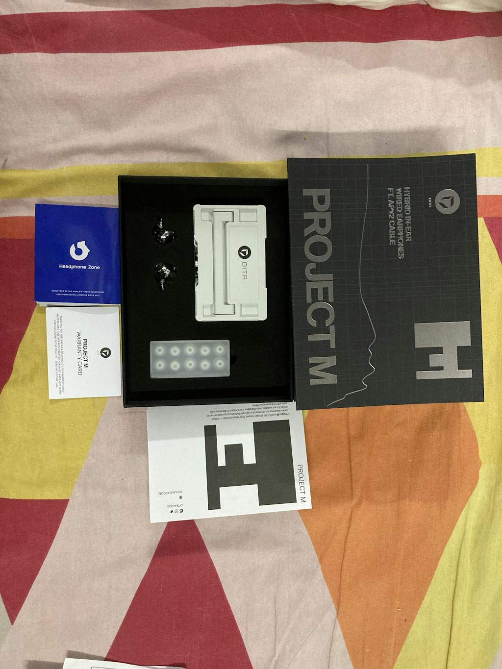 | Package Contents | DITA Audio Project M Detachable Cable x 1 Ear Tips x 6 Modular Connectors (3.5mm & 4.4mm swappable plugs) x 1 Carrying Case x 1 |