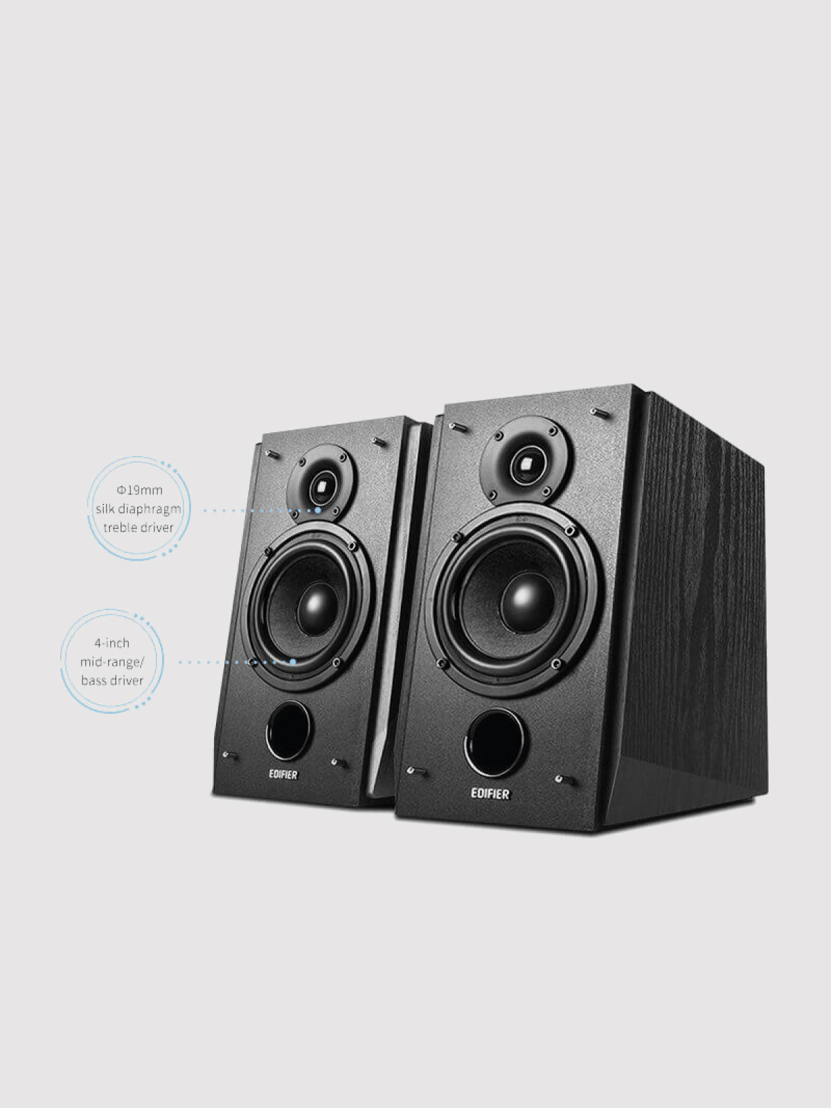 Edifier R1855DB is crafted with an MDF wooden enclosure to minimise acoustic resonance.