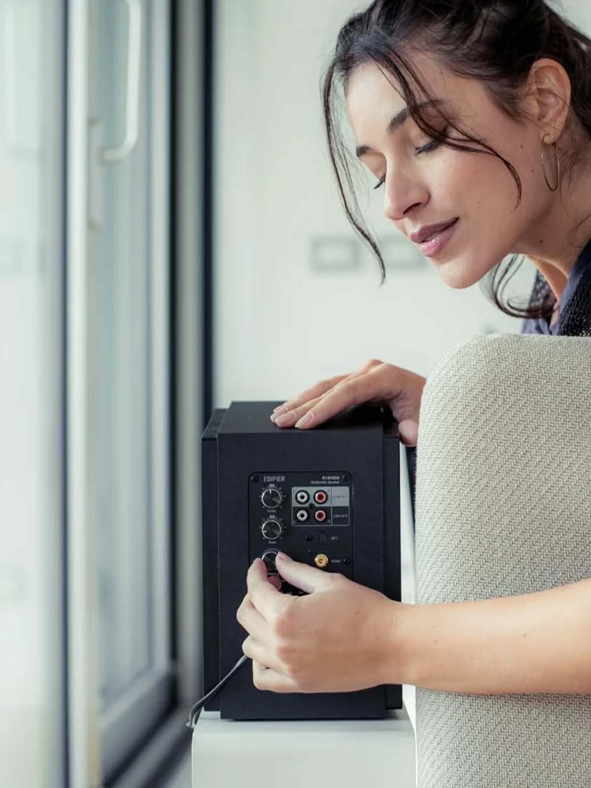 Edifier R1855DB features front-facing bass reflex port delivers deeper and punchy bass.