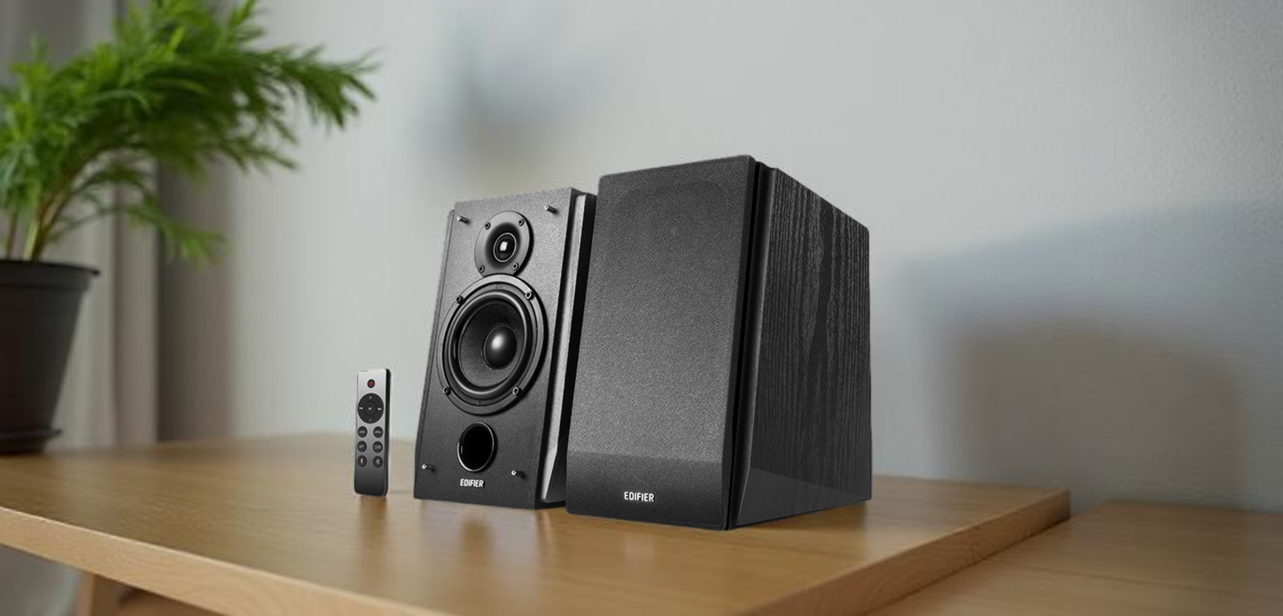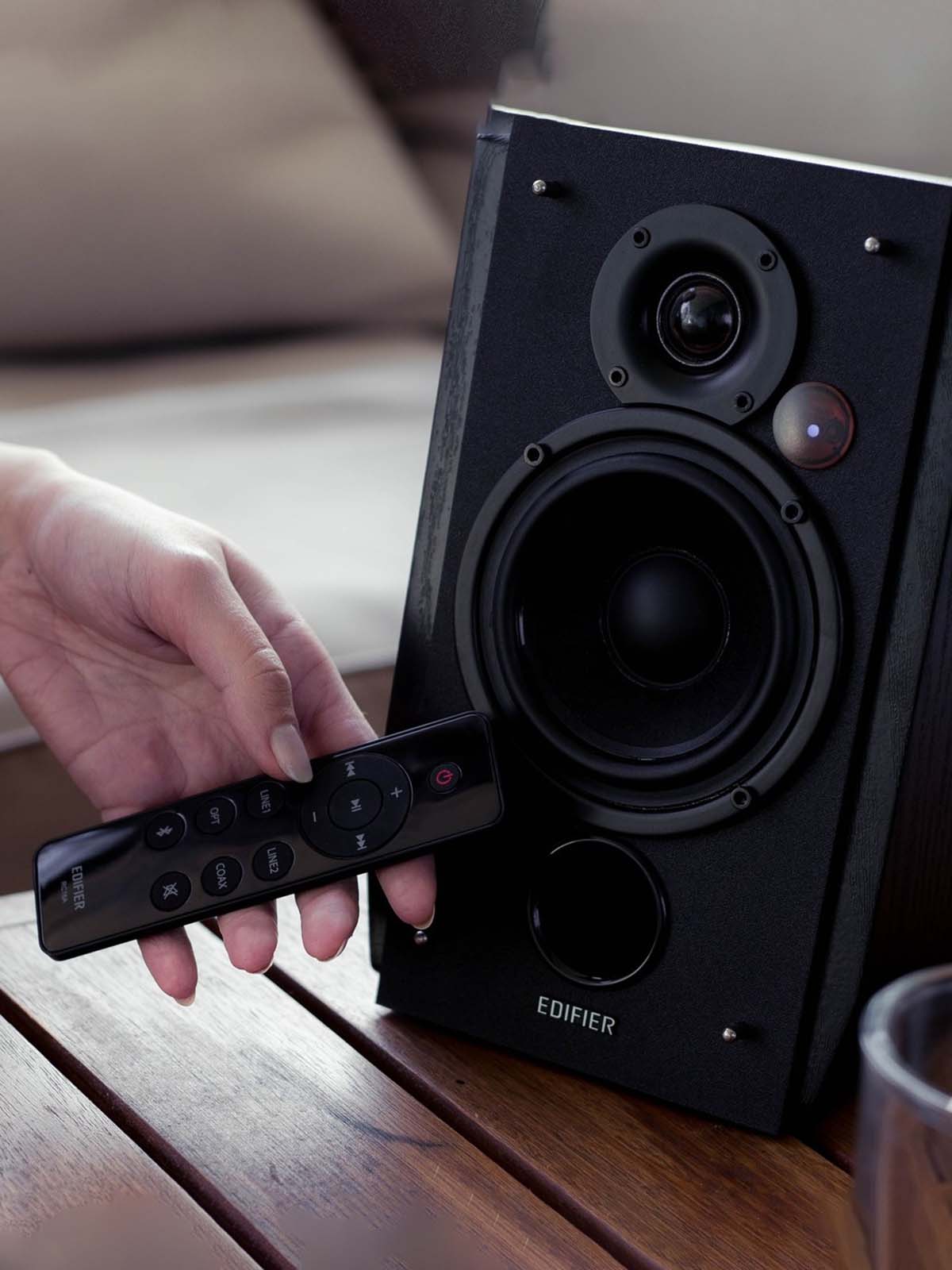Edifier R1855DB comes with a remote control for seamless control.