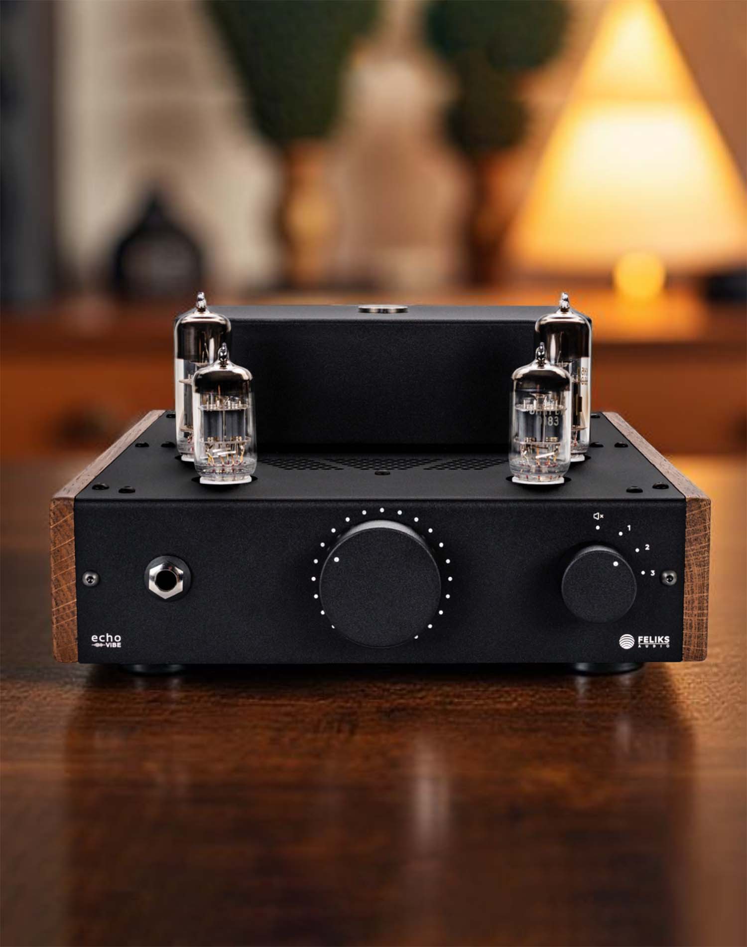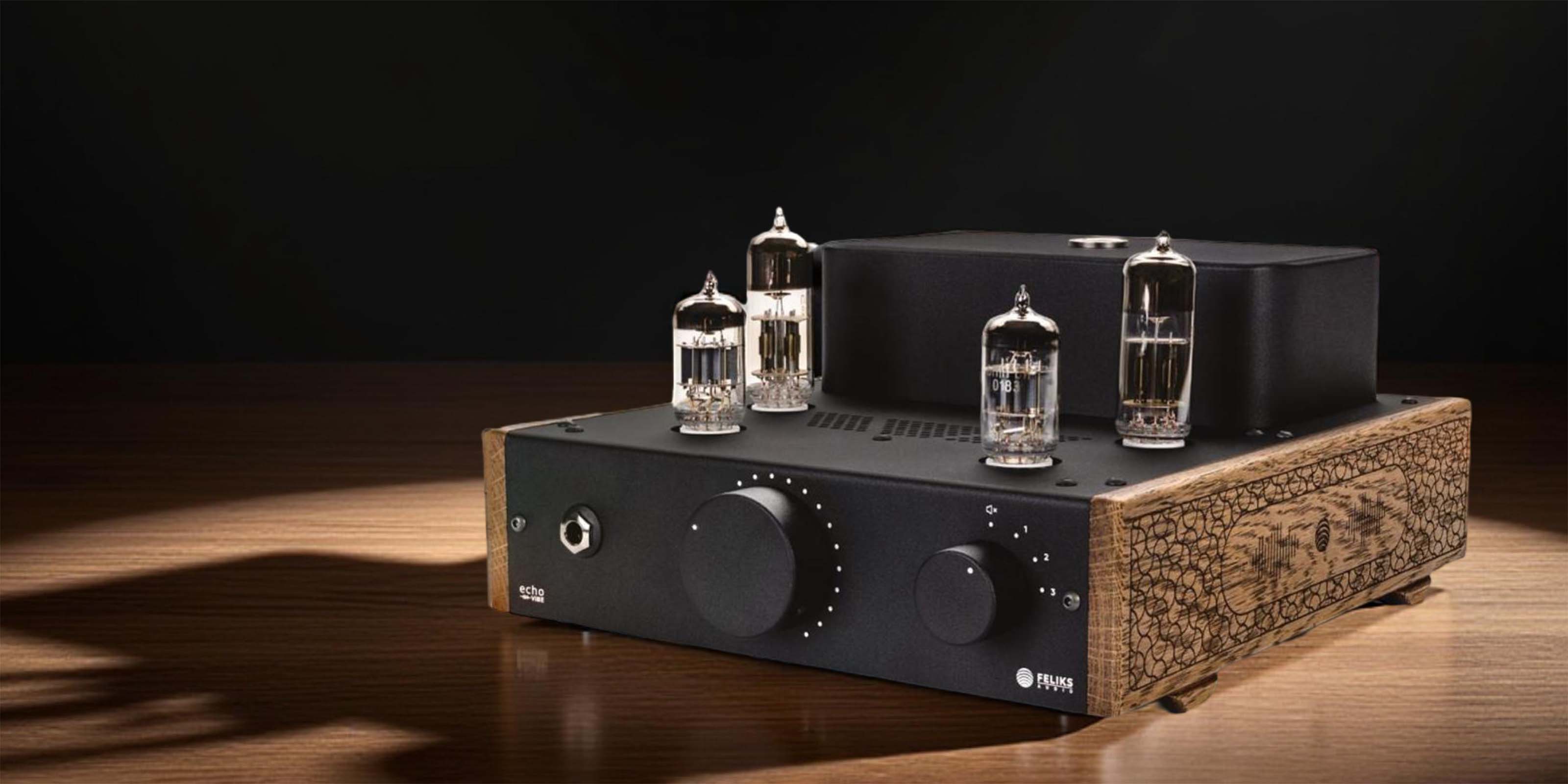 Feliks Audio Echo Vibe is crafted with wood elements and refined aesthetics present an elegant fusion of traditional craftsmanship.
