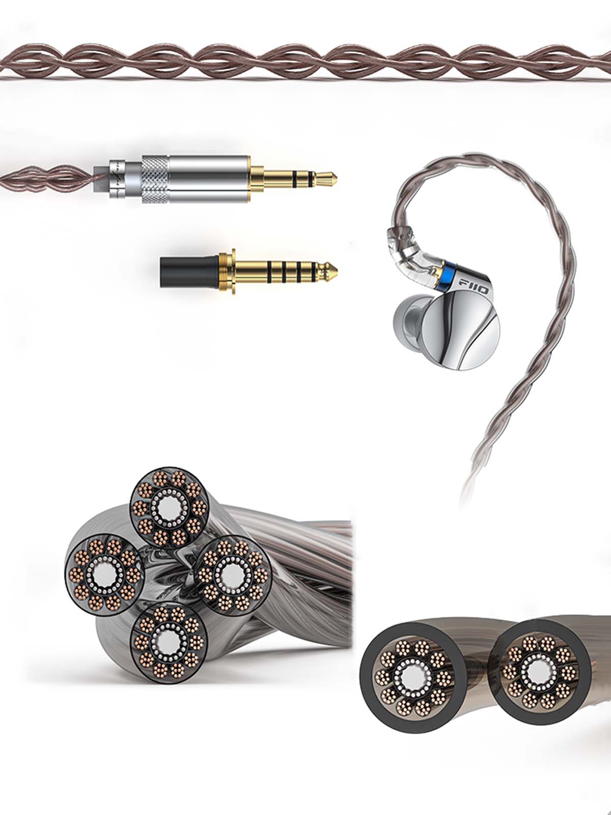 It comes bundled with a premium Furukawa monocrystalline silver and silver-plated copper braided audio cable, equipped with a straight twist-lock system that supports interchangeable 3.5mm and 4.4mm connectors.