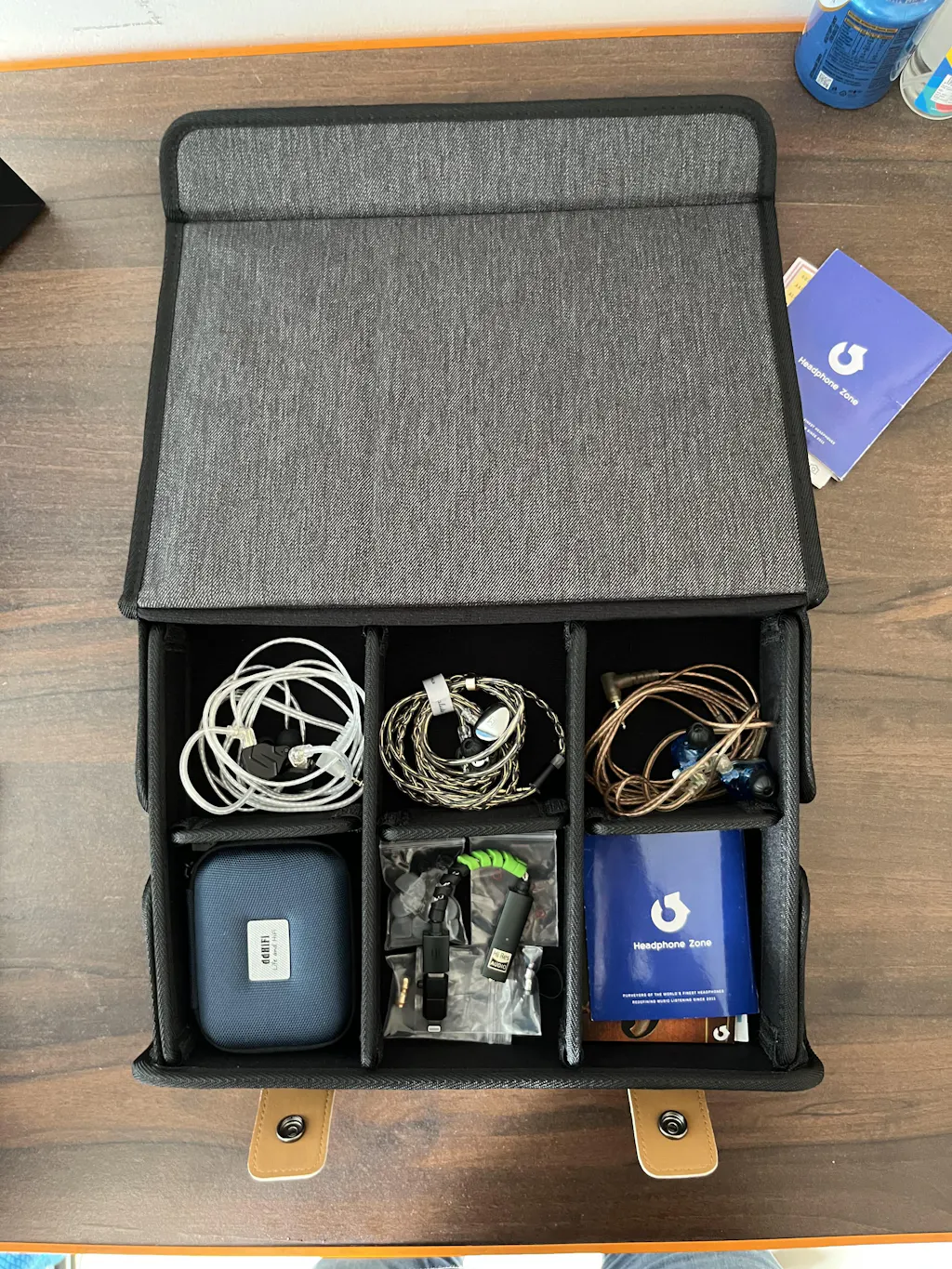 This collector's kit is designed to accommodate a wide range of audiophile gear including IEMs, headphones, cables, and accessories, ensuring compatibility with various sizes and types. From compact earbuds to larger over-ear headphones, the adjustable compartment system adapts to different equipment dimensions and collection preferences.