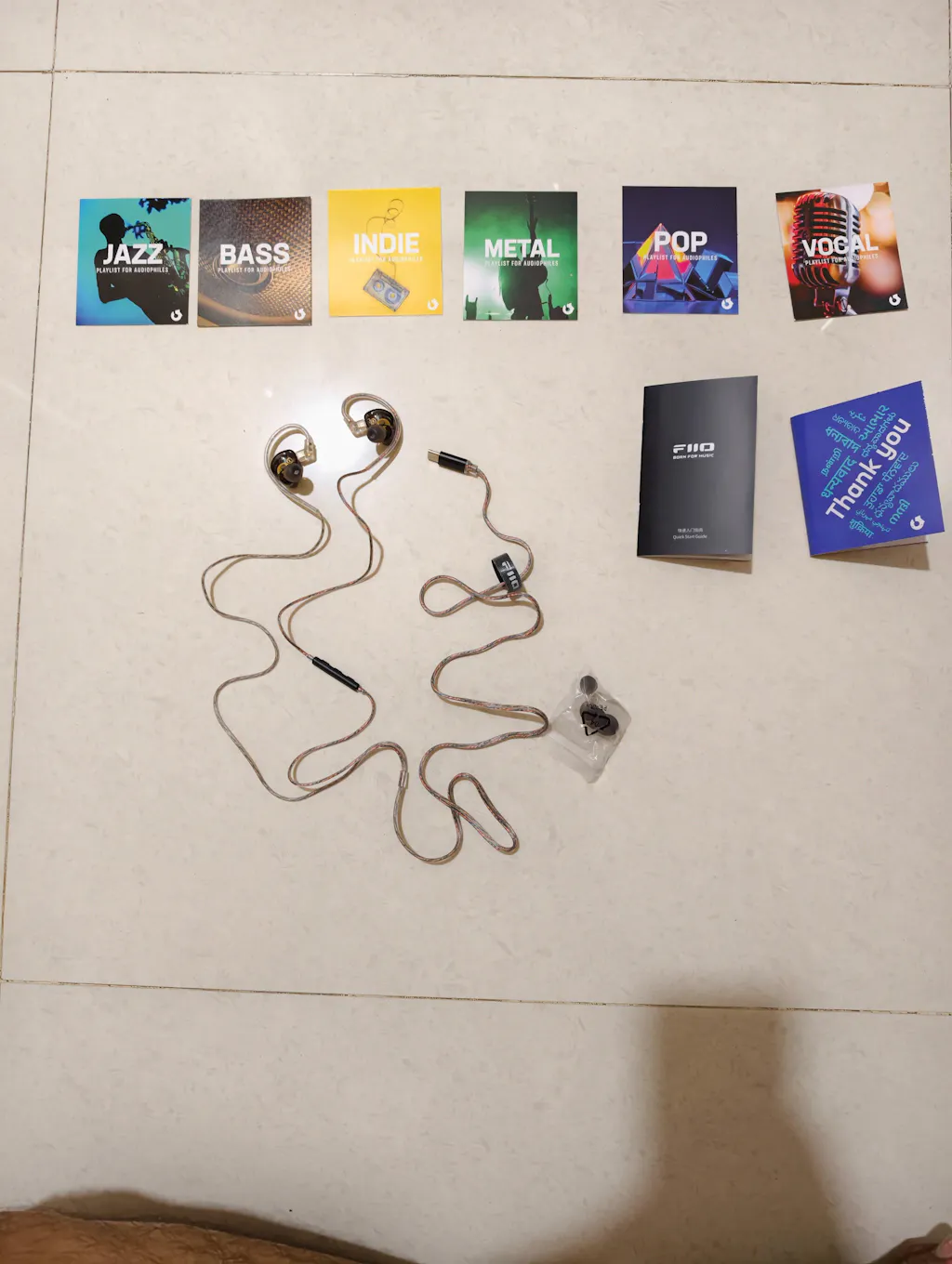 | Package Contents | Headphone Zone X FiiO JD1 Type-C / 3.5mm Earphone Cable x 1 Ear tips S/M/L x 3 pairs (M pre-installed) Quick Start Guide x1 |