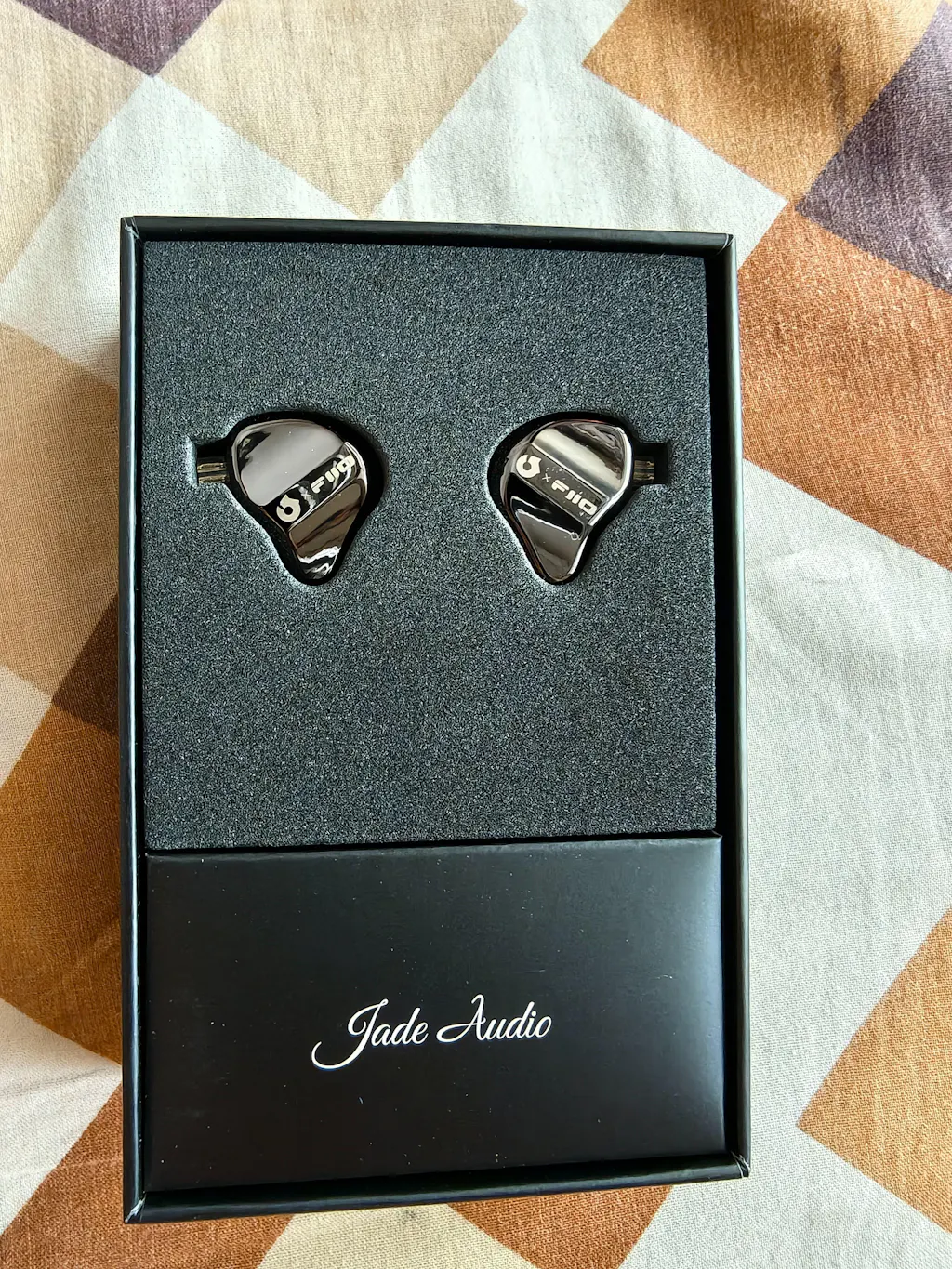 Headphone Zone X FiiO JD1 features a triangular ergonomic shell at just 7g per ear, with a die-cast zinc alloy faceplate in a black mirror finish.