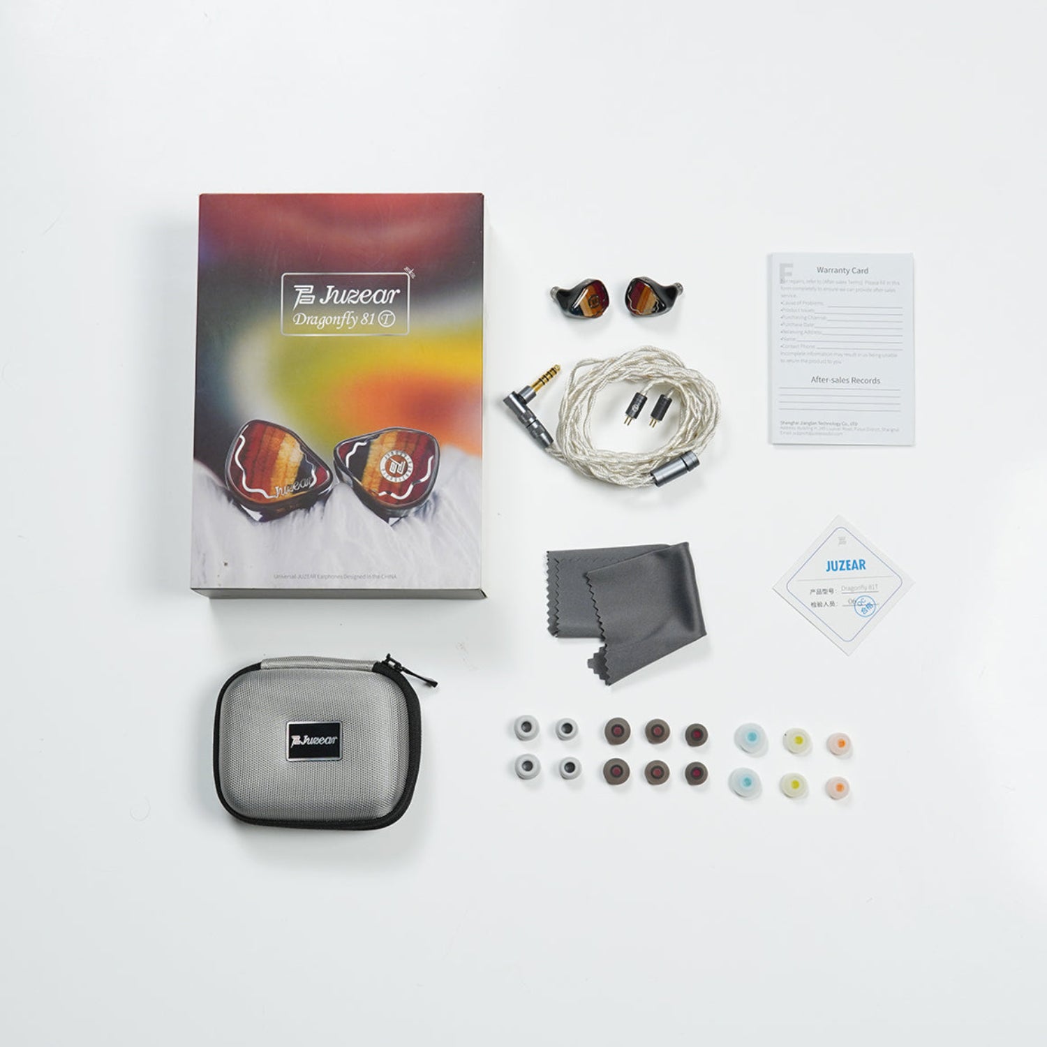 | Package Contents | Juzear Dragonfly 81T (Demo Unit) Silver-Plated Cable x 1 Packaging x 1 Headphone Case x 1 Ear Tip |