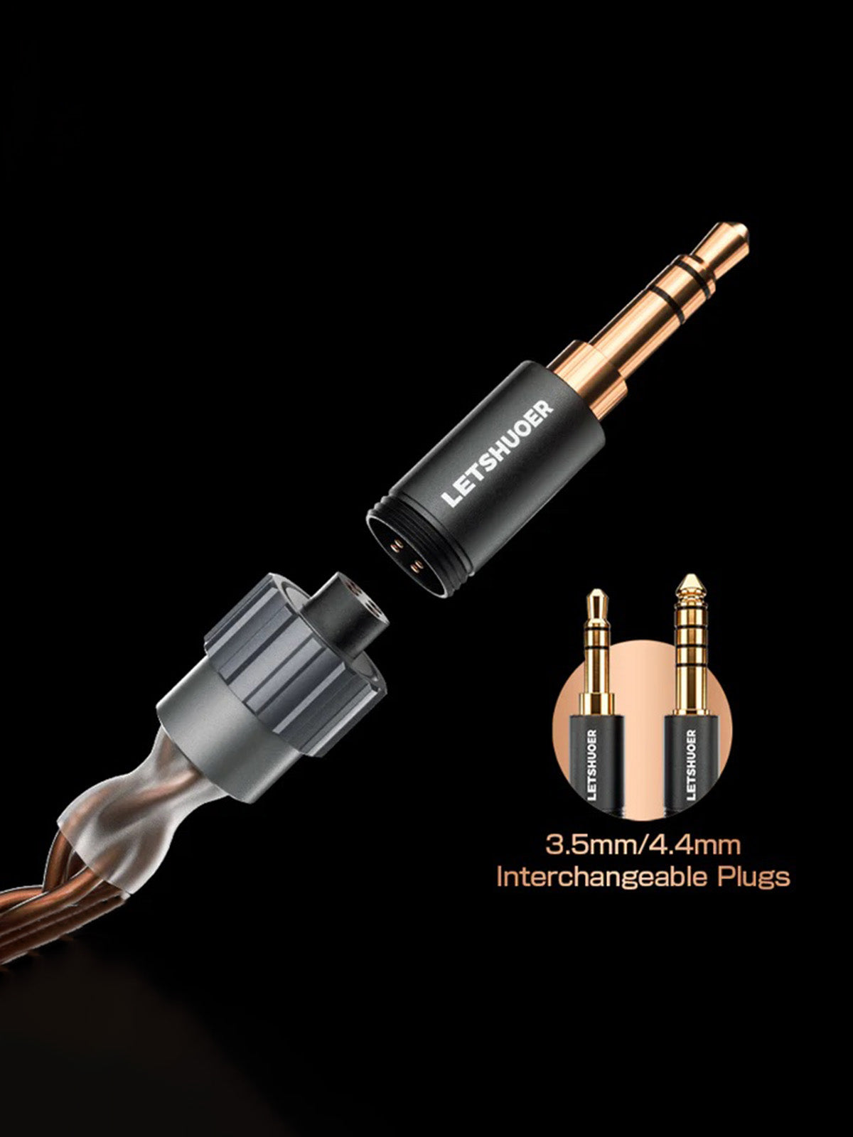 Letshuoer S08 is bundled with a modular cable with interchangeable terminations. You get 3.5mm single-ended and 4.4mm balanced plugs to switch between the plugs at your convenience.