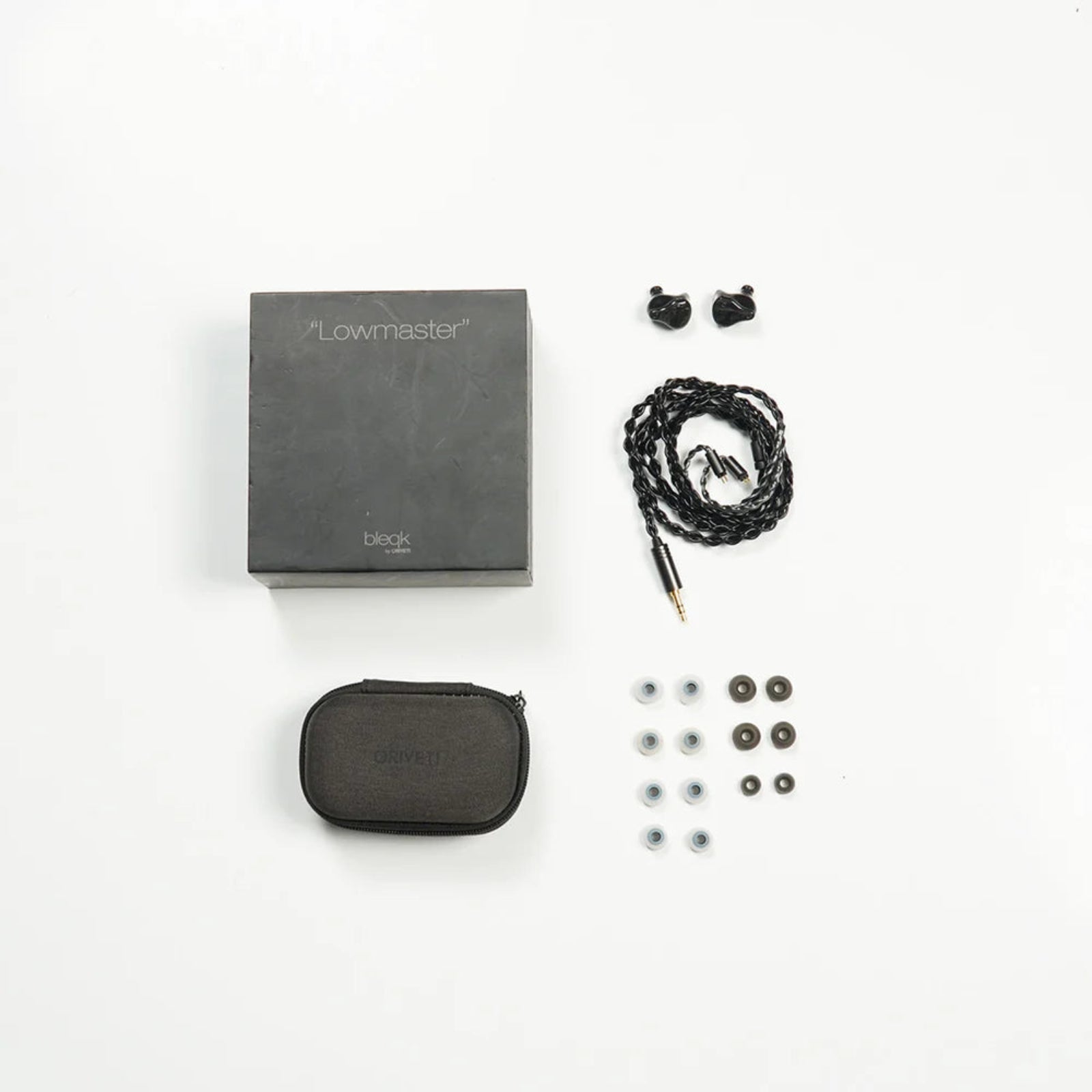 | Package Contents | Oriveti Bleqk Lowmaster (Demo Unit) 2 Pin Detachable Cable Case Eartips |