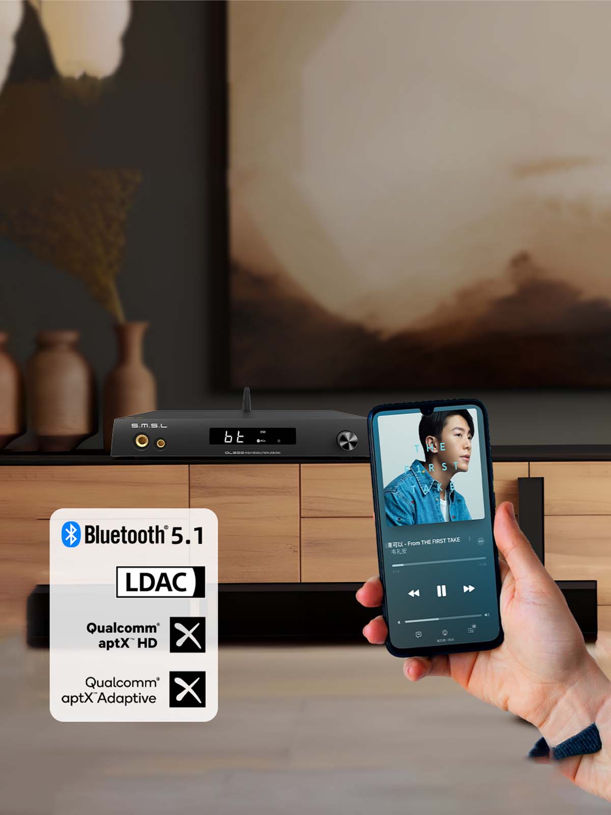 S.M.S.L introduces the DL200, a state-of-the-art DAC (Digital-to-Analog Converter) and headphone amplifier that sets new standards in audio performance. Featuring the premium ES9039Q2M DAC chip, advanced Bluetooth connectivity, and versatile output options, the DL200 is designed to deliver exceptional sound quality for audiophiles and music enthusiasts. With support for high-resolution audio formats up to 32bit/768kHz PCM and DSD512, along with MQA decoding capabilities, this sophisticated device ensures that every note is reproduced with stunning clarity and precision and is dual Hi-Res certified. Whether you're using headphones or connecting to your audio system, the DL200 promises to transform your listening experience with its professional-grade performance and thoughtful features.