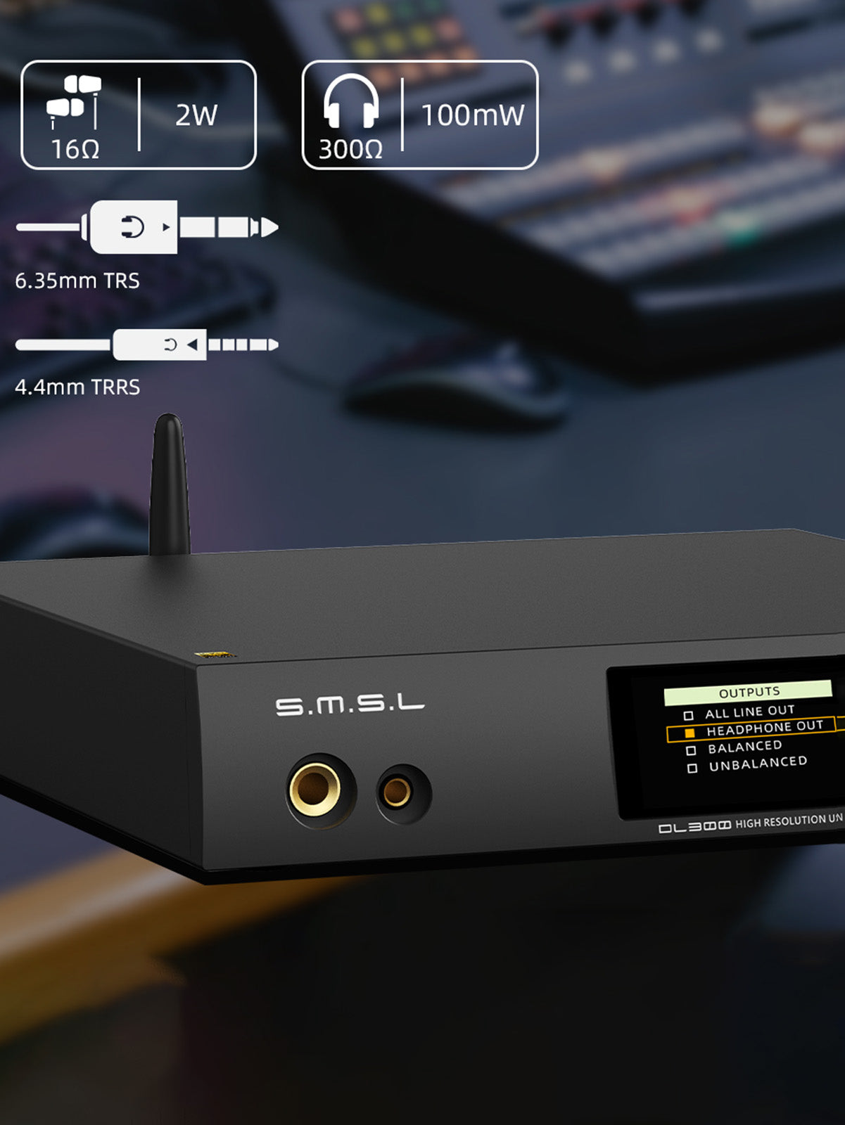 S.M.S.L DL300 features 6.3mm and 4.4mm headphone outputs to connect with various devices.