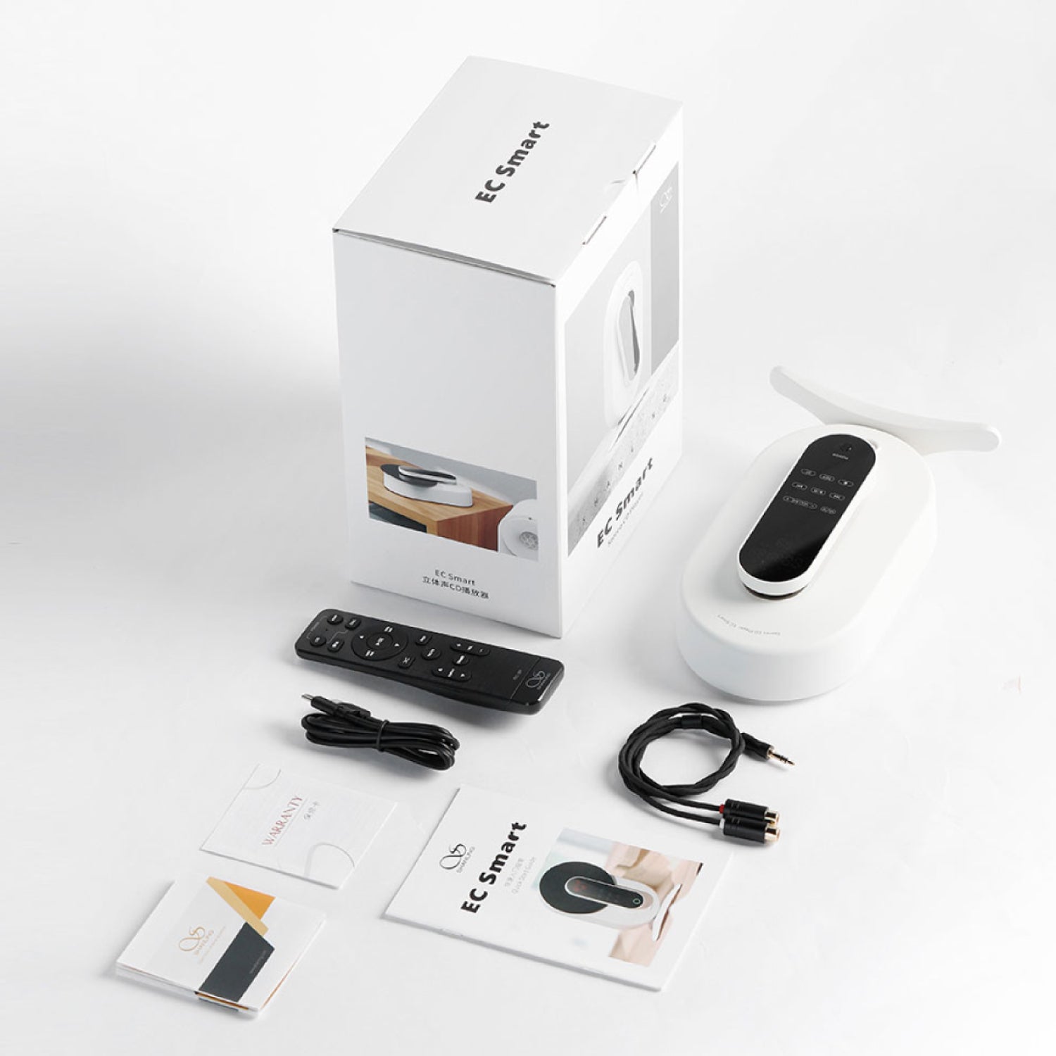 Package Contents | 1. Shanling EC Smart 2. 3.5mm to RCA Adapter Cable 3. Remote ControL,3. USB-A to USB-C Power Cable 4. Manuals |