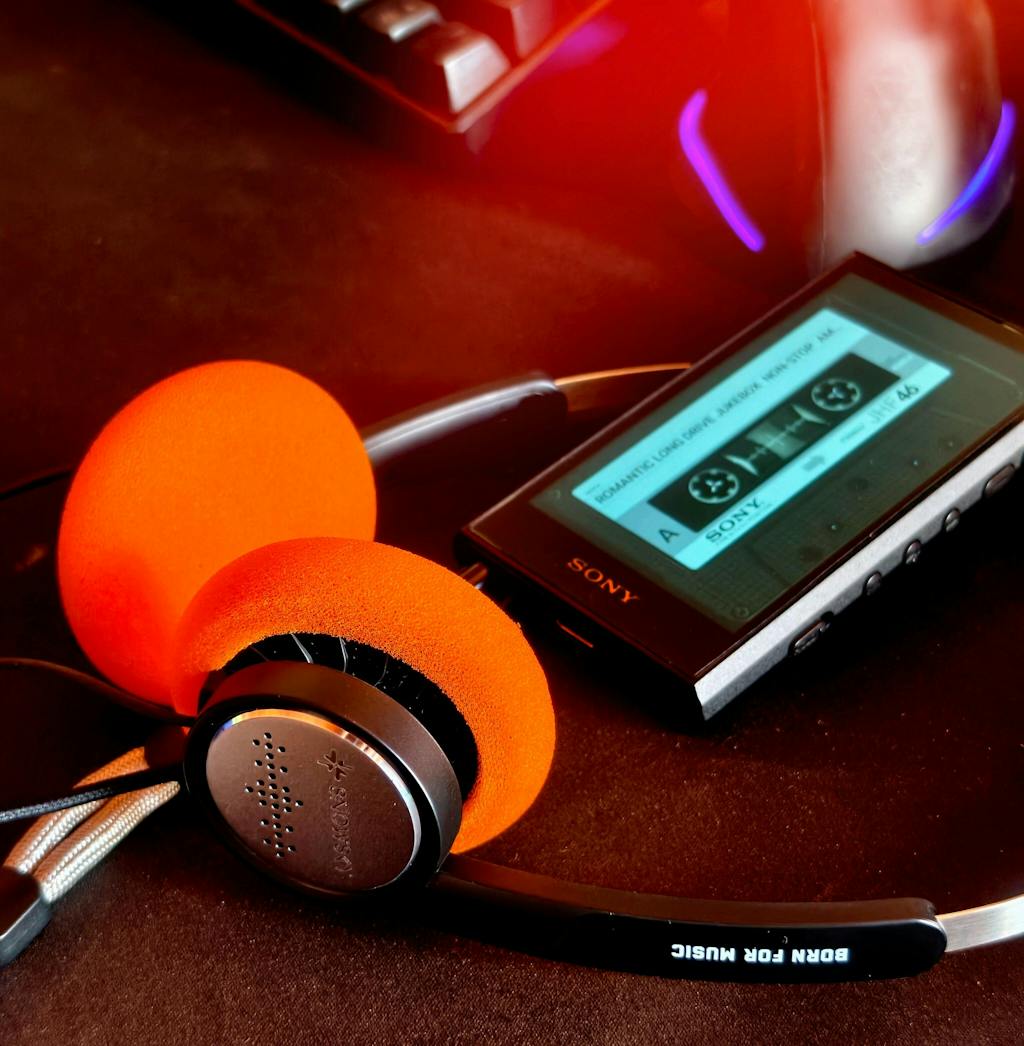 Black ear cushions enhance bass for a powerful sound. Orange ear cushions provide a more relaxed, balanced audio experience.
