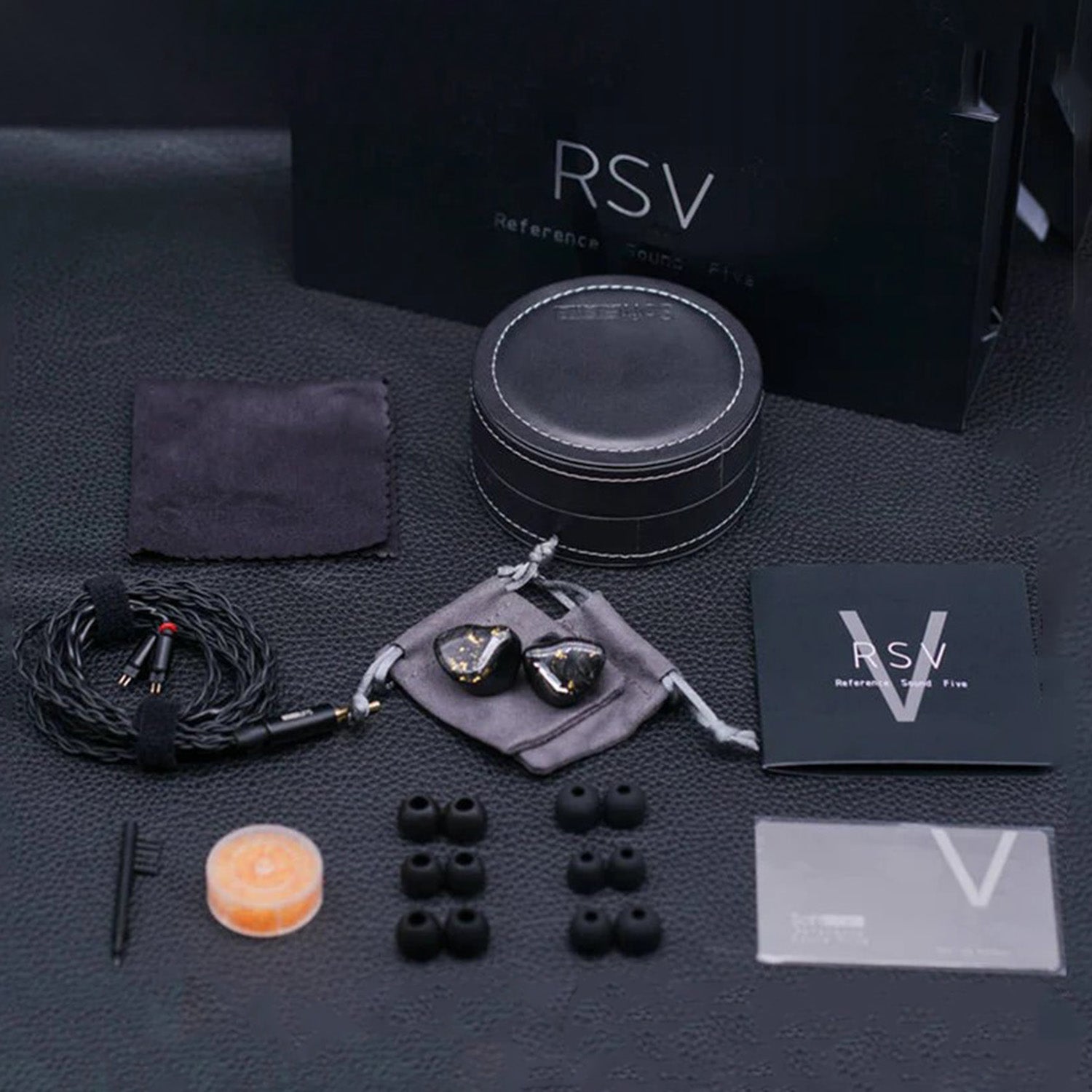 Package Contents | Softears RSV Earphone CableS,Eartips S,M,L * 6 pairS,Clean kit Storage Case User ManuaL,Brand Card |