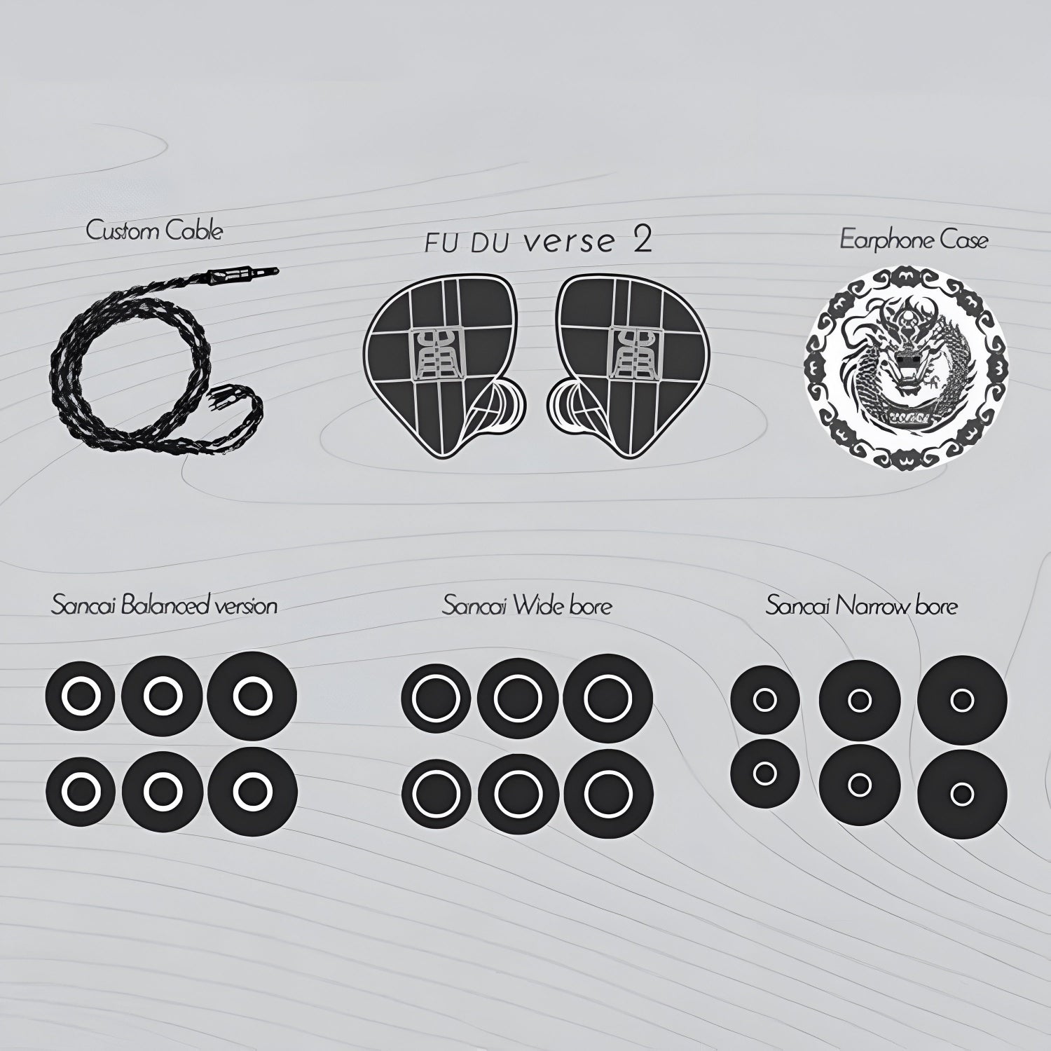 Package Contents | Tangzu FuDu Verse II Custom Cable Earphone Case Tang Sancai Balanced Version Tang Sancai Wide Bore Tang Sancai Narrow Bore |