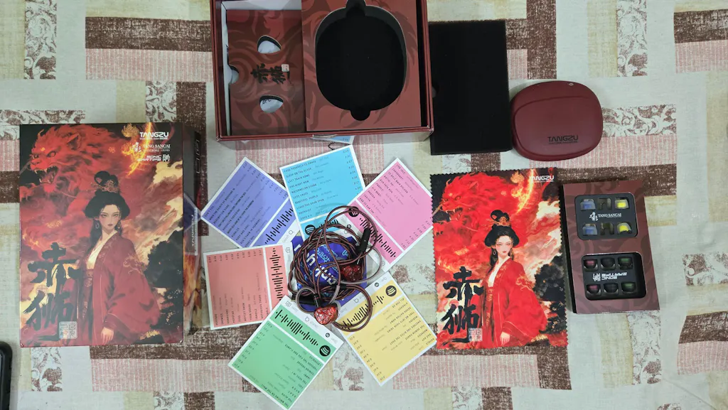 | Package Contents | Tangzu Wan'er S.G 2 Red Lion Edition Custom Tangzu Cable Cleaning Cloth Tang Sancai Eartips HE Sonic Eartips IEM Silicone Case |