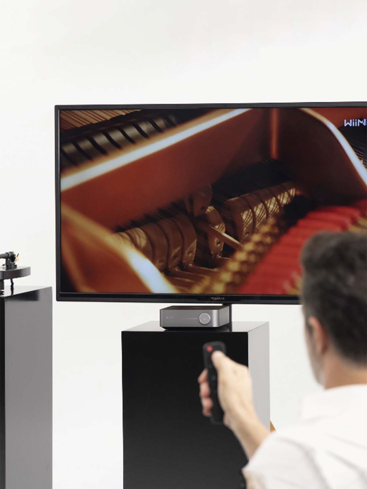 The Wiim Amp seems to be designed to take a very front-and-center role in your home audio setup, an idea that’s reinforced with the inclusion of an Amazon Alexa-powered voice remote.